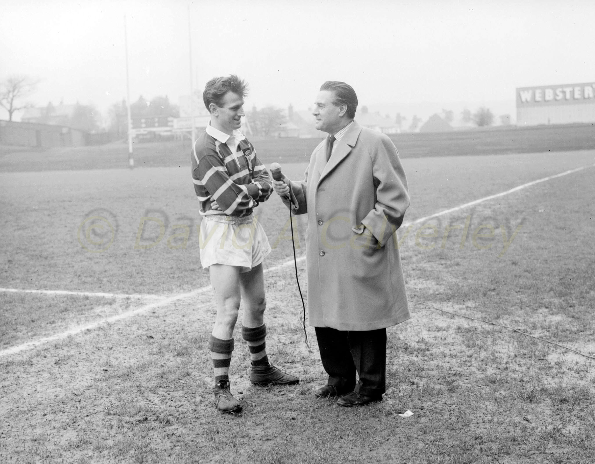 **Copyright Huddersfield Daily Examiner** Kirklees ref: ke17153 Examiner ref: EX62.1769 06/05/1962 Fartown Rugby, Eddie Waring interviewing Smailes